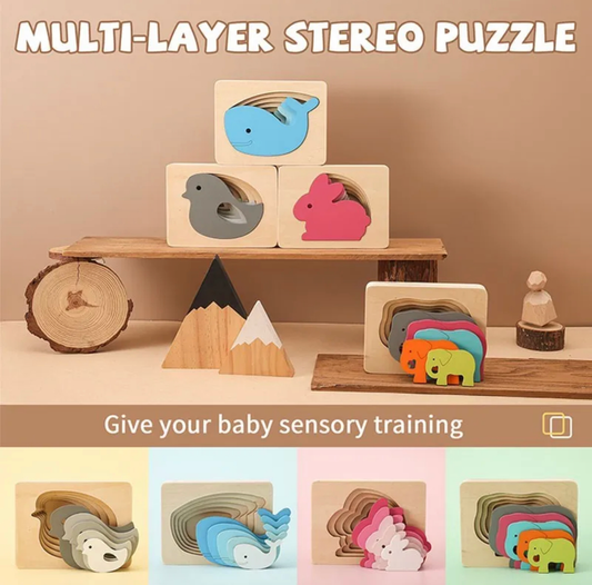 3D többrétegű fa puzzle( nyuszis/elefántos/madaras/bálnás )