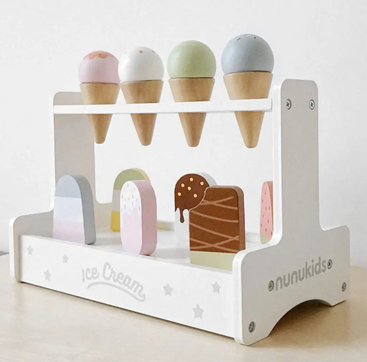 Nunukids fa fagylalt és jégkrém játékkészlet állvánnyal – Szerepjáték fagyizó gyerekeknek