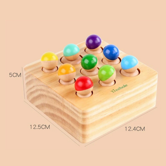 Montessori szivárvány fa henger készlet- formabeillesztő játék bábukkal