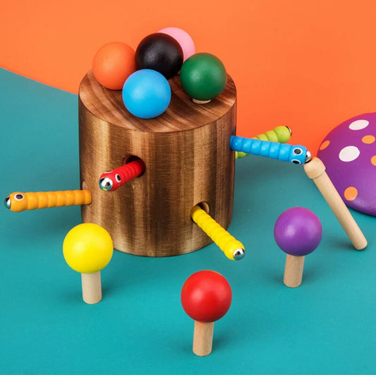 Fa gombás mágneses játék – kukacfogó játék gyerekeknek