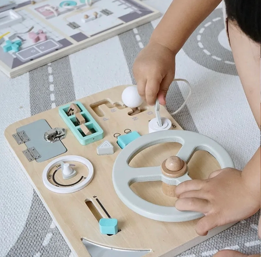 Nunukids Montessori matató fa tábla(kormánnyal, sebességváltóval, kapcsolókkal)