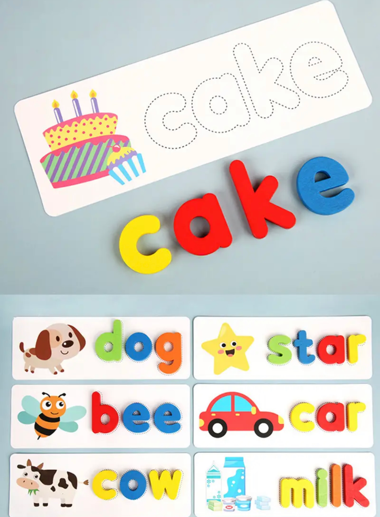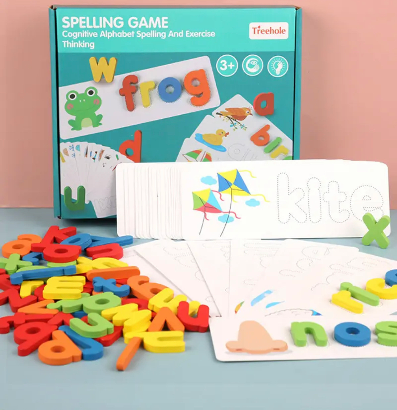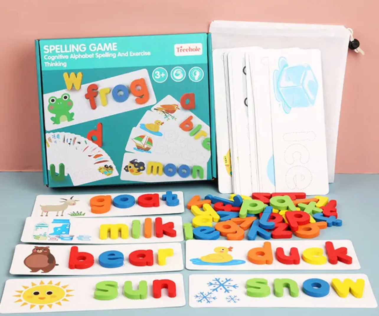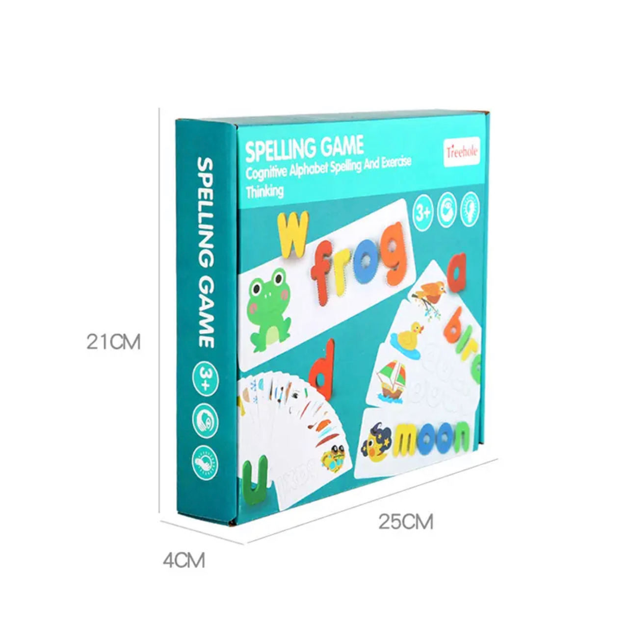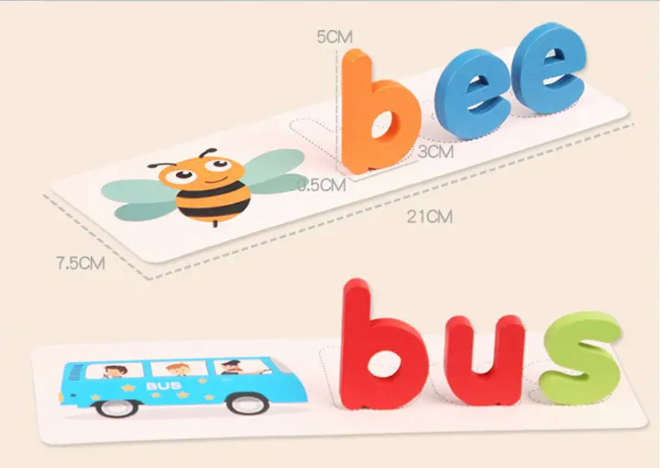 Szókirakó játék angol szavakkal, fából készült betűkkel. Segíti az angol nyelv elsajátítását, emelett fejleszti a kognitív képességét is.