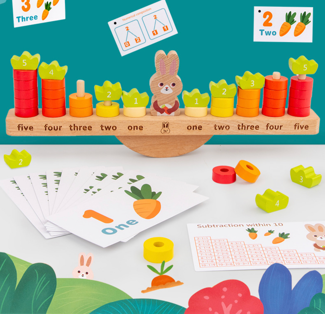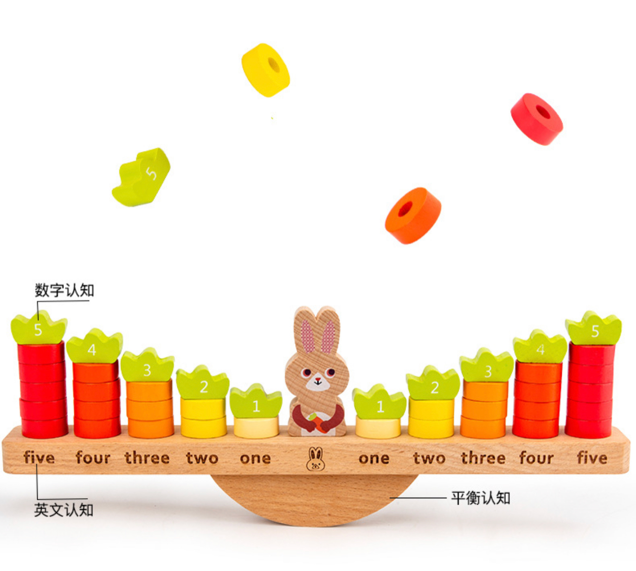 Ismerd meg aezt az egyensúlyozós nyuszis számlálójátékot - egy szórakoztató és tanulságos fából készült játékot, amely fejleszti a gyerekek matematikai készségeit és finom motoros képességeit egyszerre. Ez a különleges játék kombinálja a számolást, az angol nyelvtanulást és az egyensúlyozást egy szórakoztató és interaktív élménnyé.