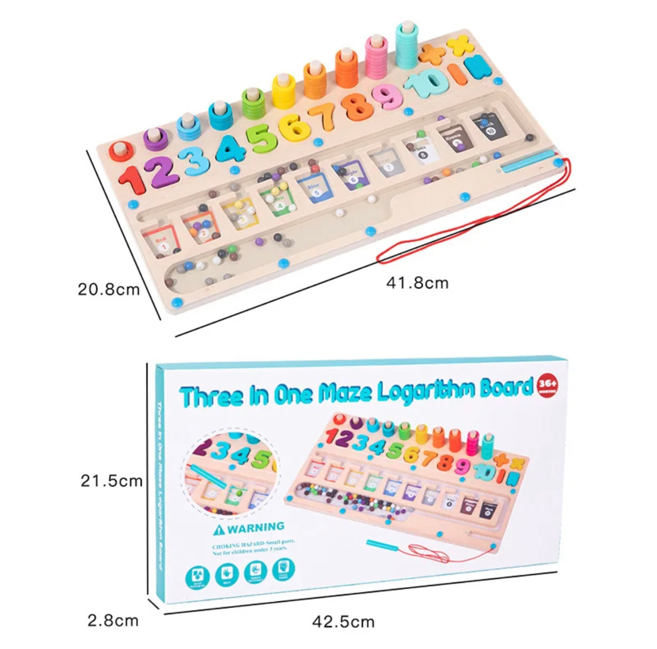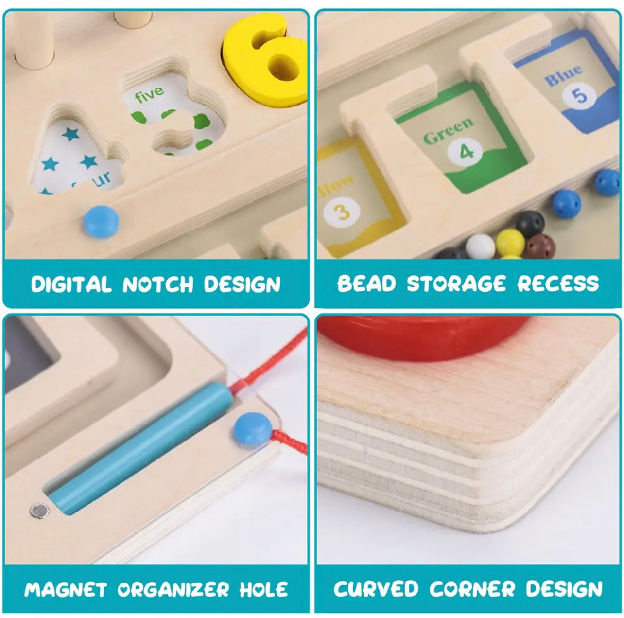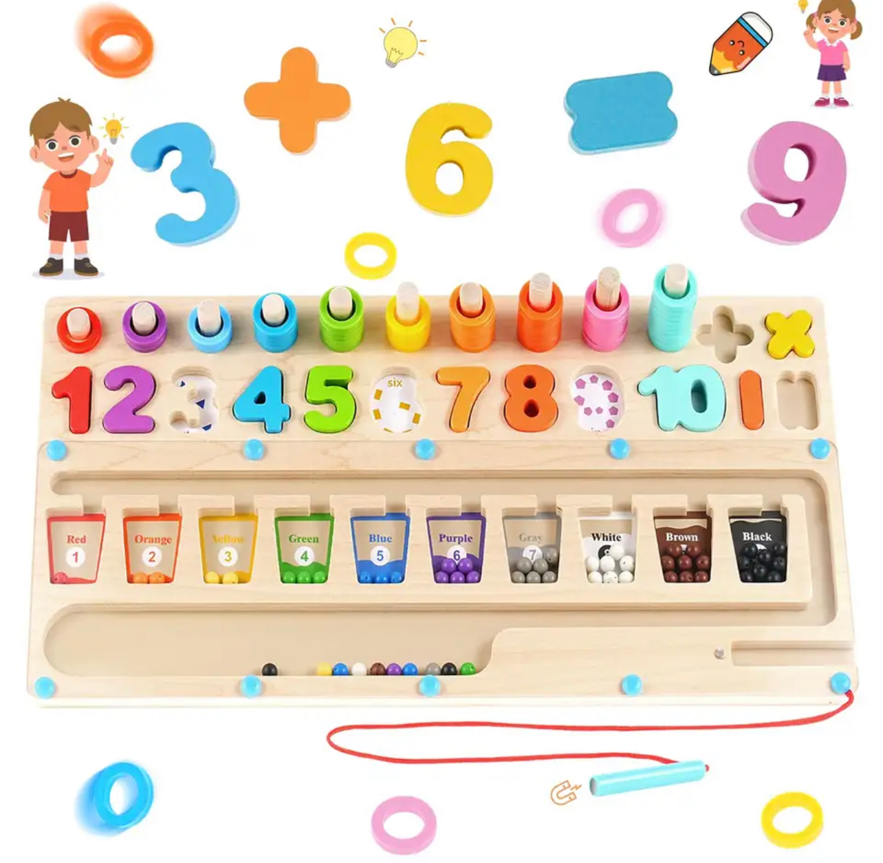 Színes és számlabirintus - fából készült mágnes tábla rejtvények