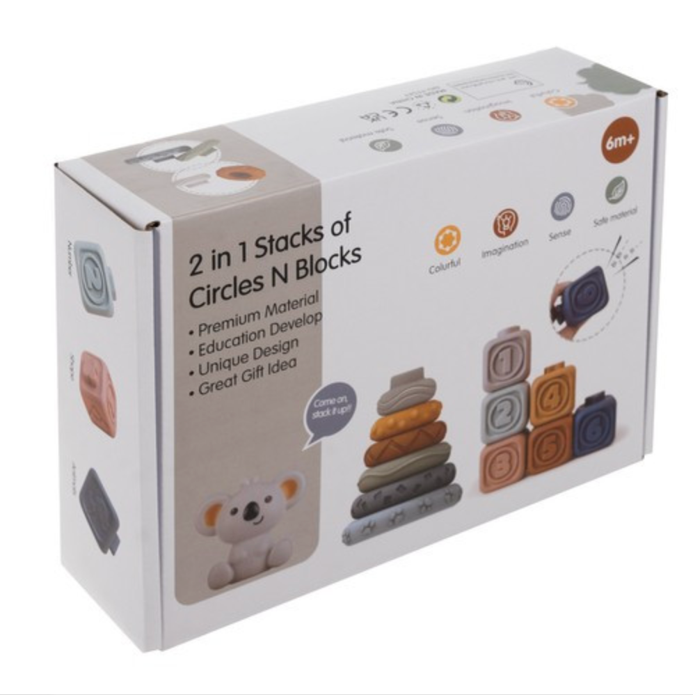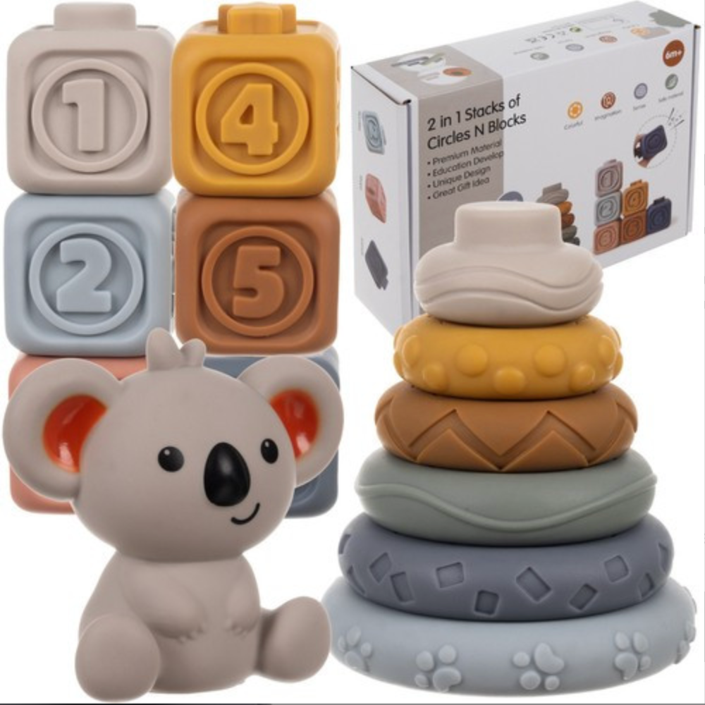 Koala maci formájú puha szenzoros kockák és torony 13 db-os készlet
