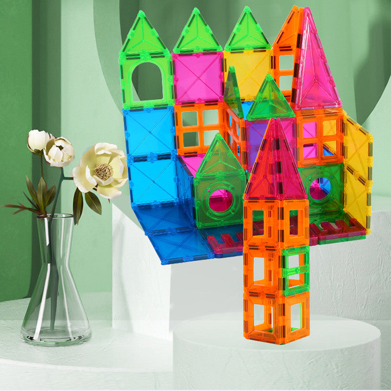 - Kreativitás és tanulás támogatása: A mágneses építőkészlet korai alapot ad a gyerekeknek a kreativitás, a geometriaérzék és az építészet fejlesztéséhez.