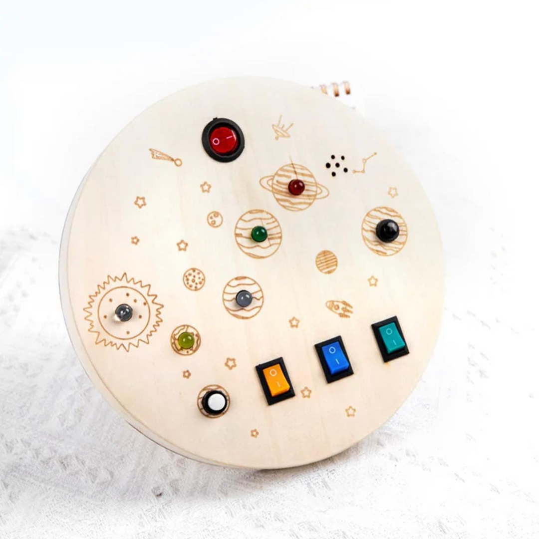 Bemutatunk Önnek egy egyedi darabot, amely minden szülőt megörvendez, és minden gyermeket izgat – egy fából készült szenzoros játékot 6 kör alakú érzékelővel. Ez a csodálatos játék ötvözi a hagyományos értékeket a modern innovációval, hogy több órányi szórakozást és tanulást biztosítson gyermekeinek. Nem csak játék, hanem eszköz is, amely támogatja a gyermek agyának és motorikus képességeinek fejlődését.