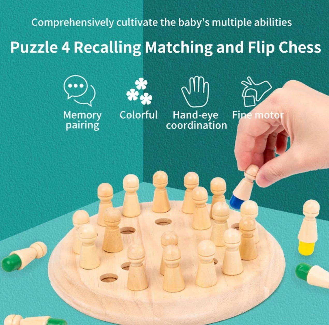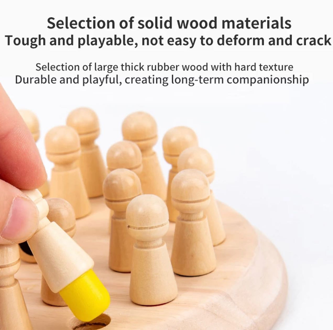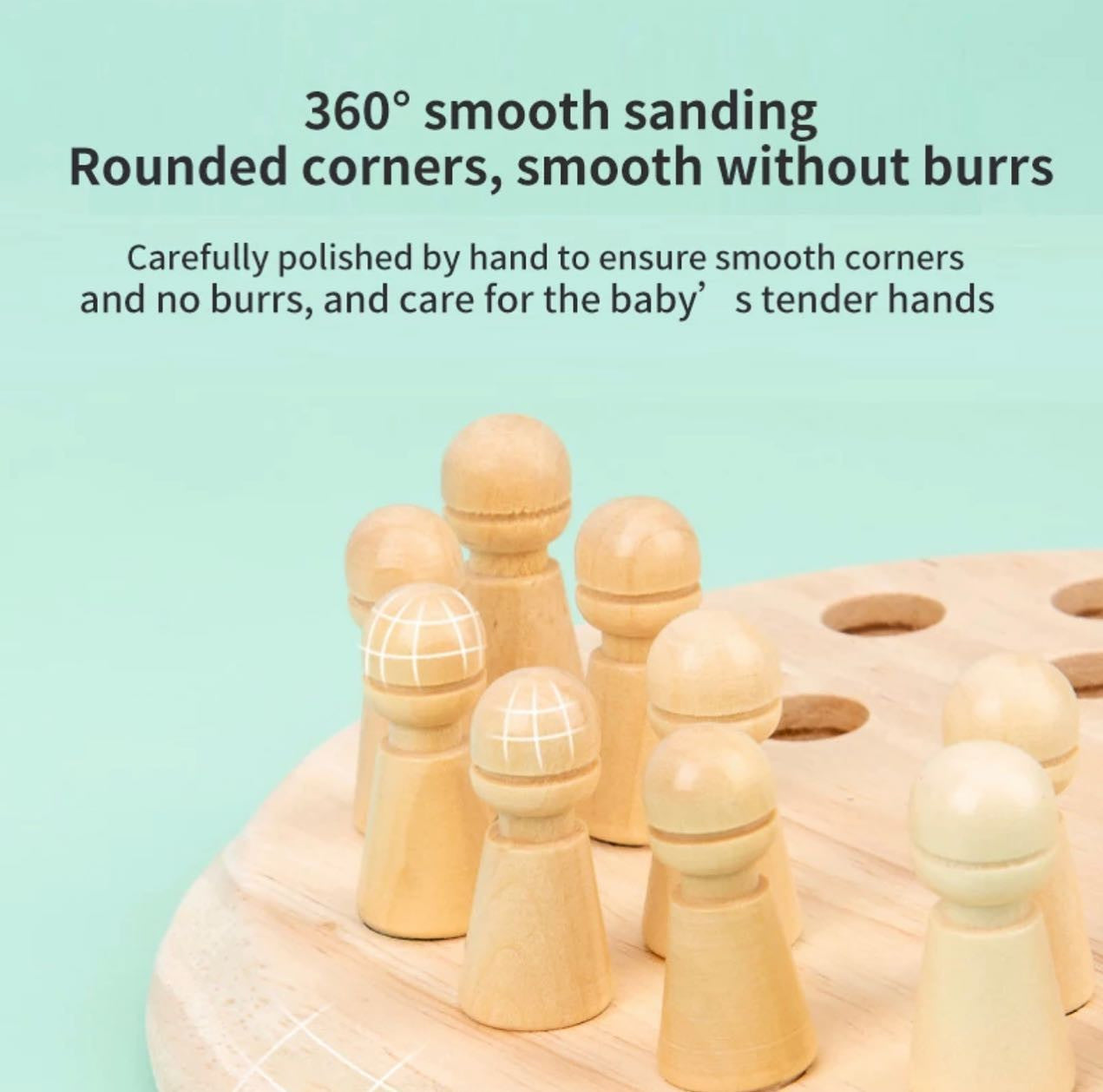 Memória sakk játékunkat a gyerekek motorikus készségeinek fejlesztésére tervezték. Biztonságos és nem mérgező faanyagból készült. A festett sima felületű réteg nem sérti fel gyermekének kezét