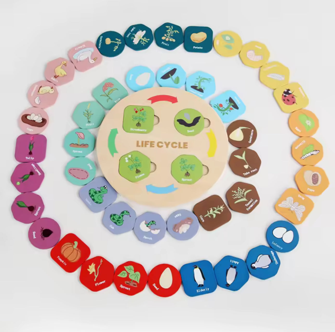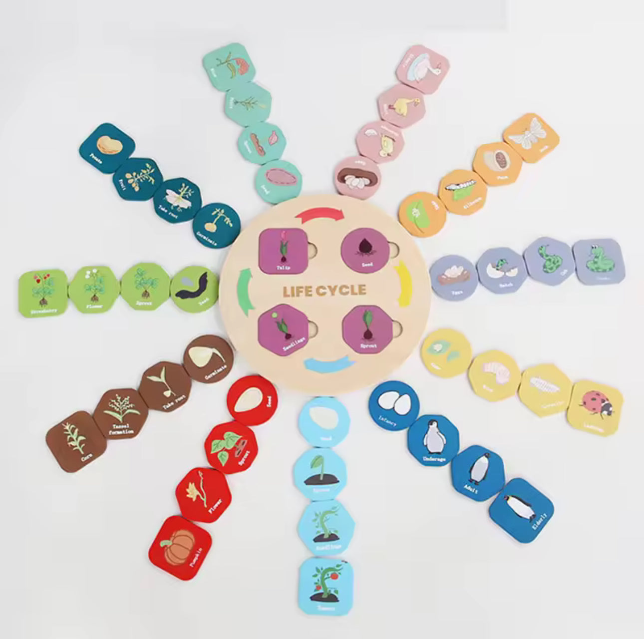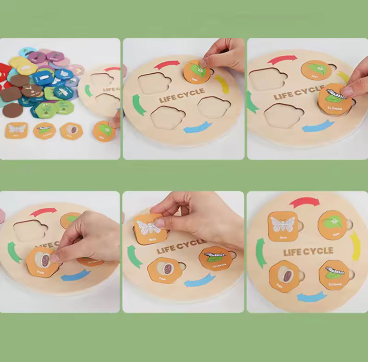 Montessori életciklusok biológia oktató fa játék