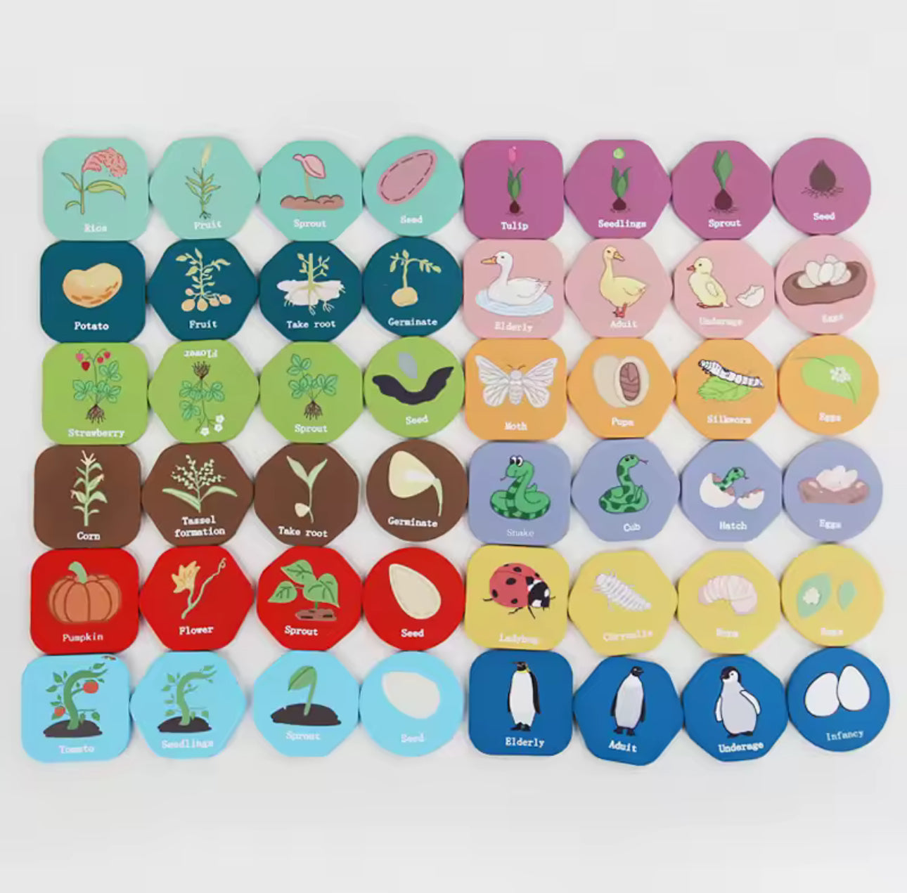 1. INTERAKTÍV ÉLETCIKLUS TANULÁS: Fa életciklus játékainkat úgy terveztük, hogy interaktív tanulási élményt nyújtsanak. Ez a 48 darabos készlet lehetővé teszi a gyerekek számára, hogy felfedezzék az állatok és növények életciklusát, kielégítve a természet iránti kíváncsiságukat.