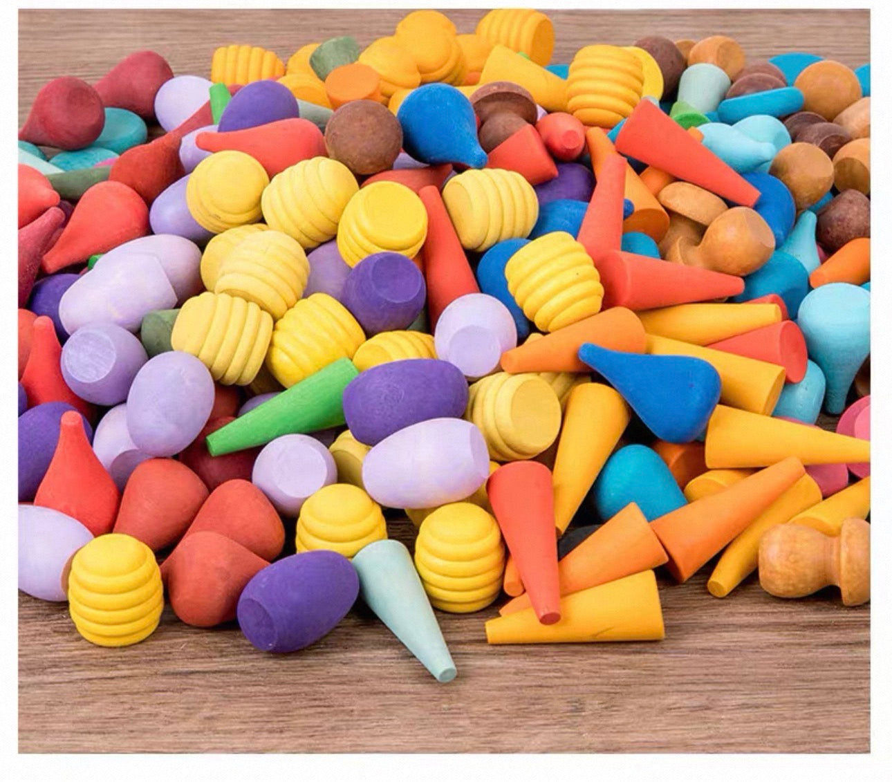 📦 Csomag tartalma: 9 féle forma, több száz színes faelem, fa tárolódoboz