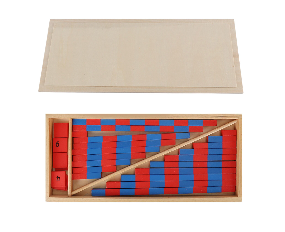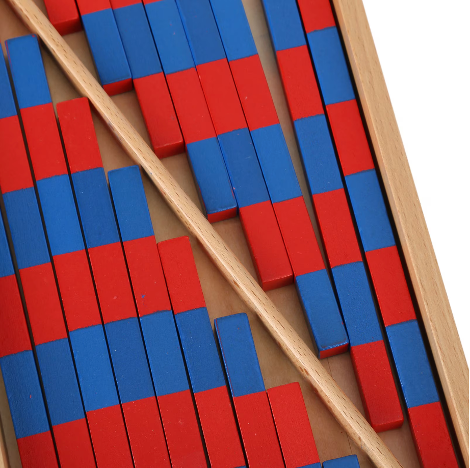 Kiváló Montessori-stílusú oktatójáték, amely segíti a gyerekeket a matematikai alapok elsajátításában. A kék és piros színű számrudak segítenek megérteni a mennyiségeket, a sorrendet és a mérést, miközben fejlesztik a logikus gondolkodást és a szem-kéz koordinációt.