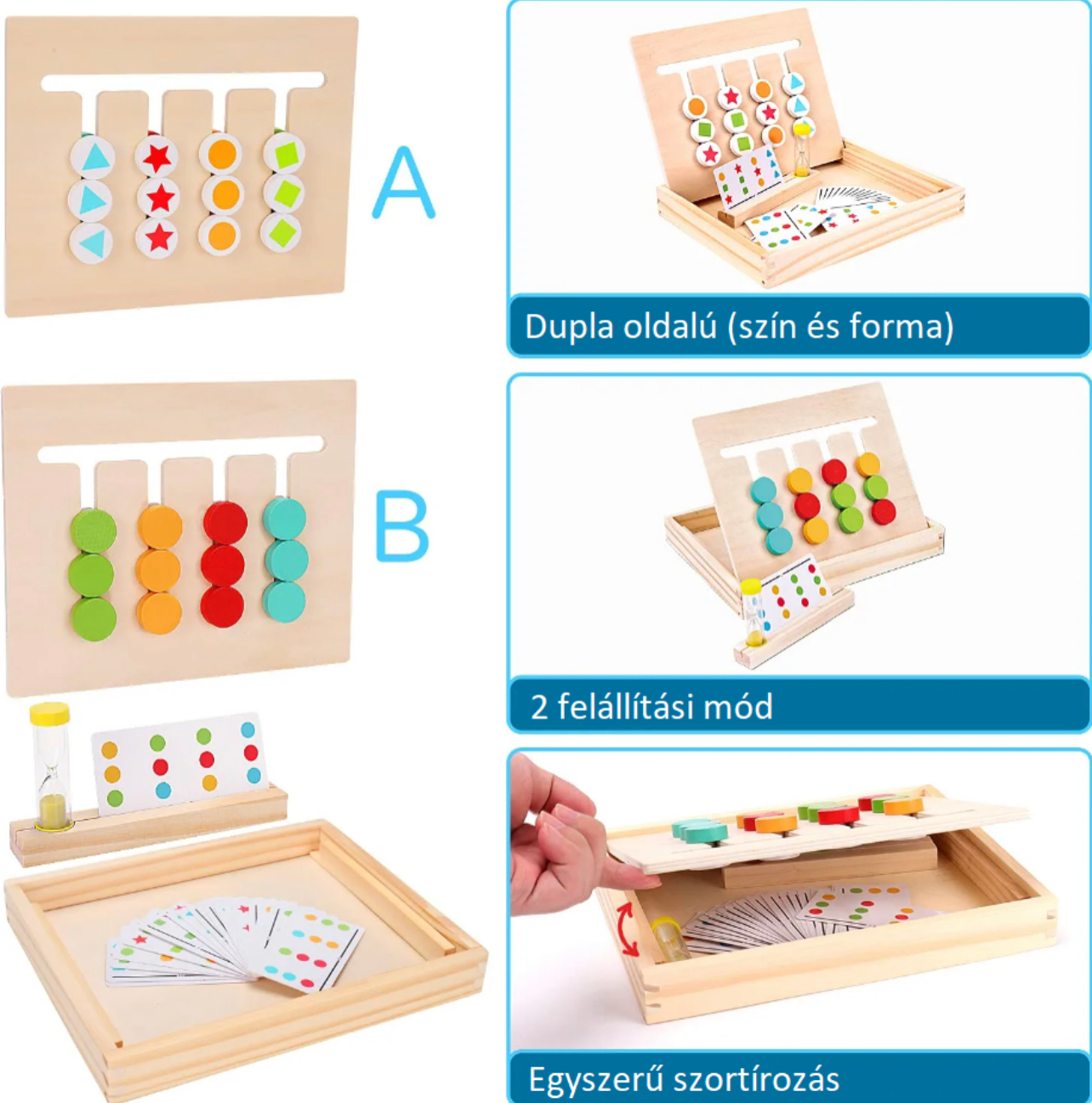 Gyakran Ismételt Kérdések-Montessori kétoldalas logikai játék