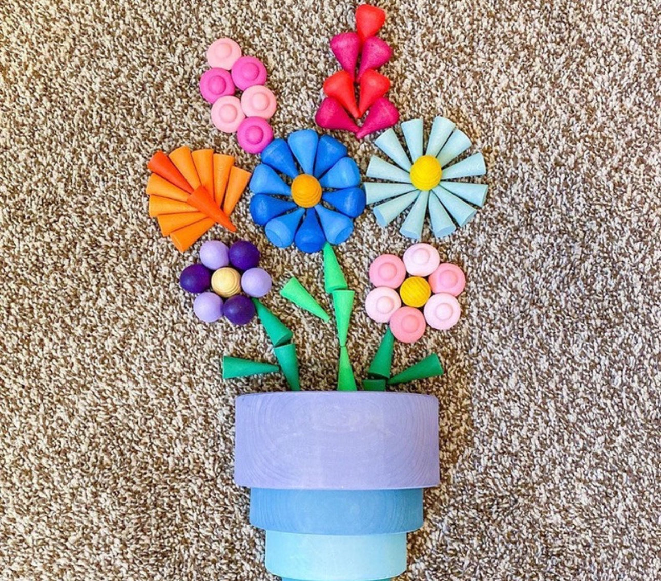 Készíthetnek mandalákat, építhetnek erdőt, kis világokat díszíthetnek, vagy akár rakományként is használhatják a vonatokhoz, teherautókhoz. Finom pasztell színeivel és természetes fa tapintásával remek kiegészítő Montessori és Waldorf ihletésű játékokhoz.