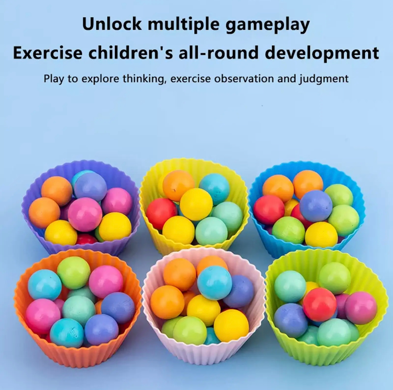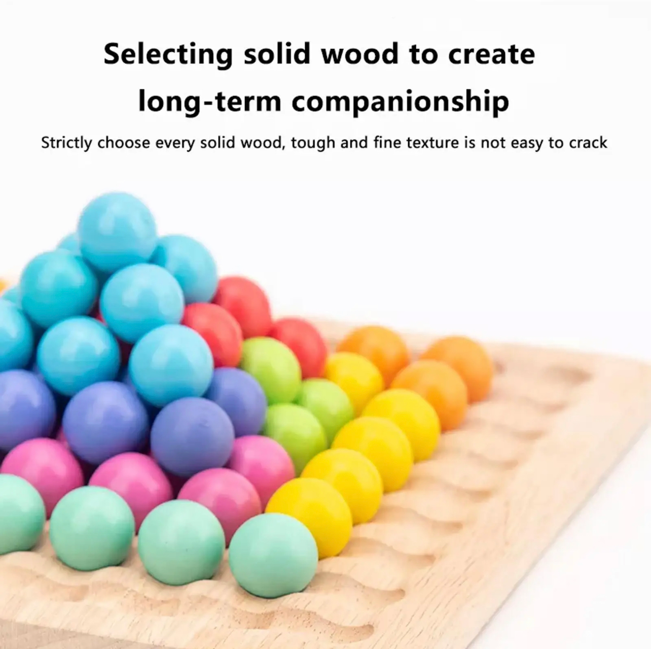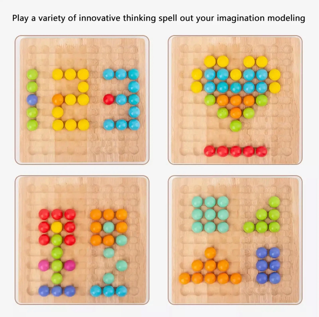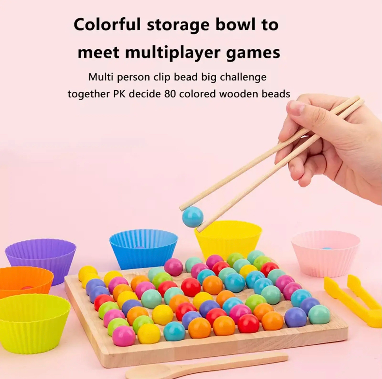 A Montessori szivárvány gyöngyök egy koncentrációt fejlesztő színválogató játék, mely tartalmazza a feladatlapokat, egy kanalat, egy csipeszt, válogatótálakat, és hét különböző színű golyót. A feladatlapokat a fakeretbe helyezzük, és a lapon lévő mintákat a gyerekek, kézzel, kanállal vagy csipesszel is ki tudják rakni.