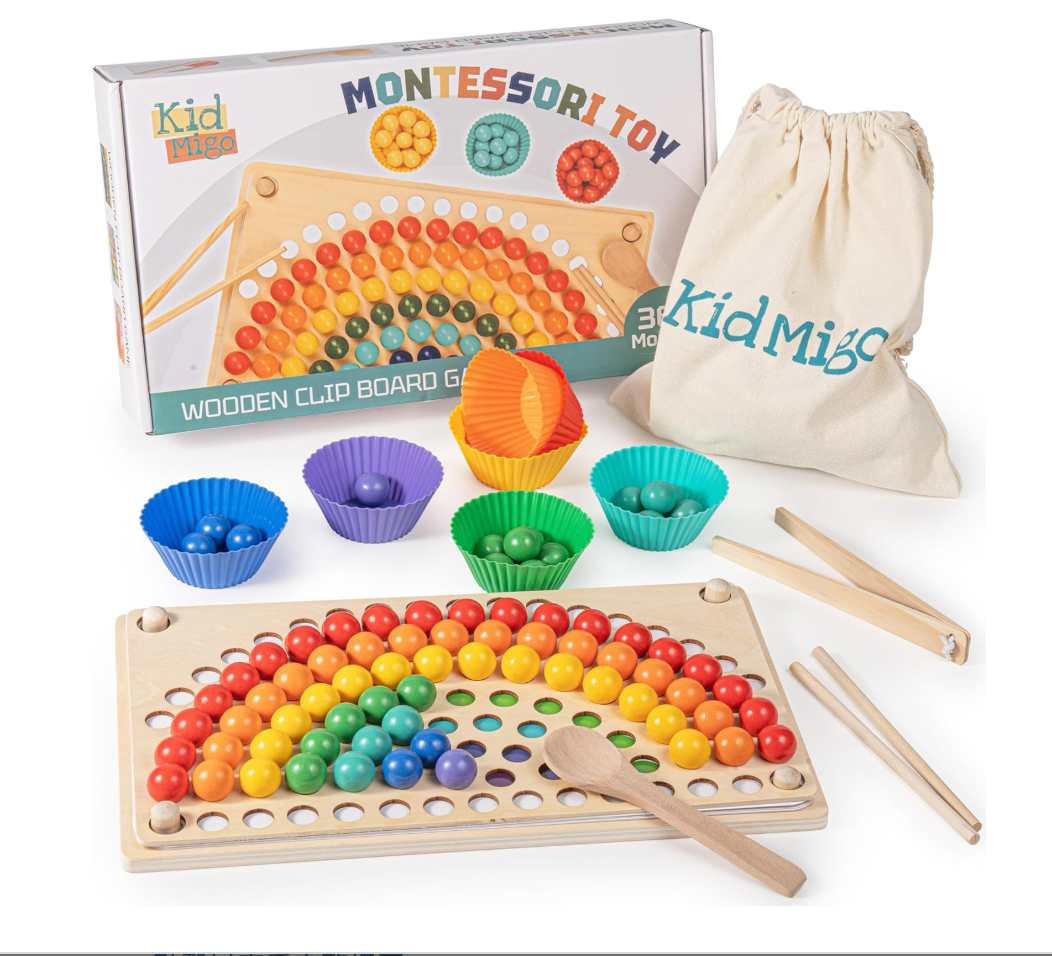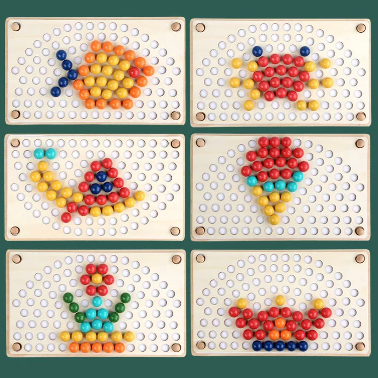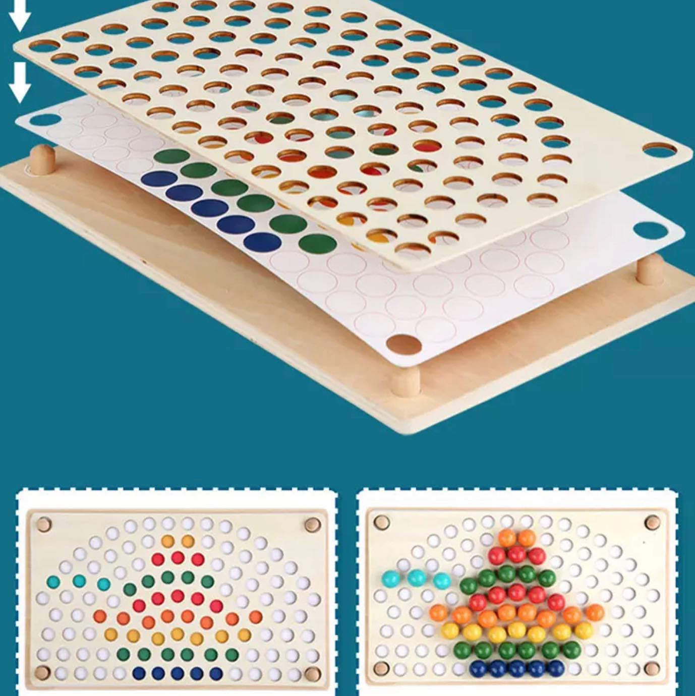 A lapon lévő mintát a gyerekek kézzel, kanállal vagy csipesszel is ki tudják rakni.