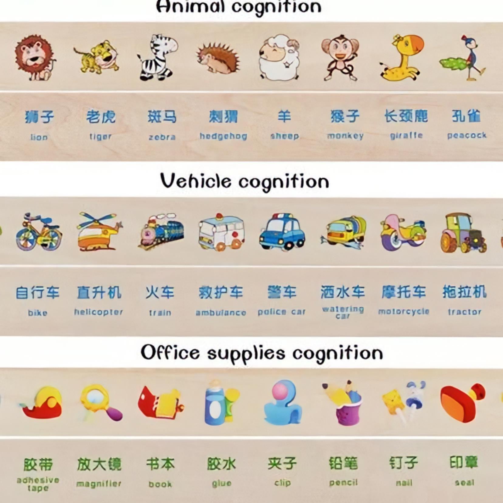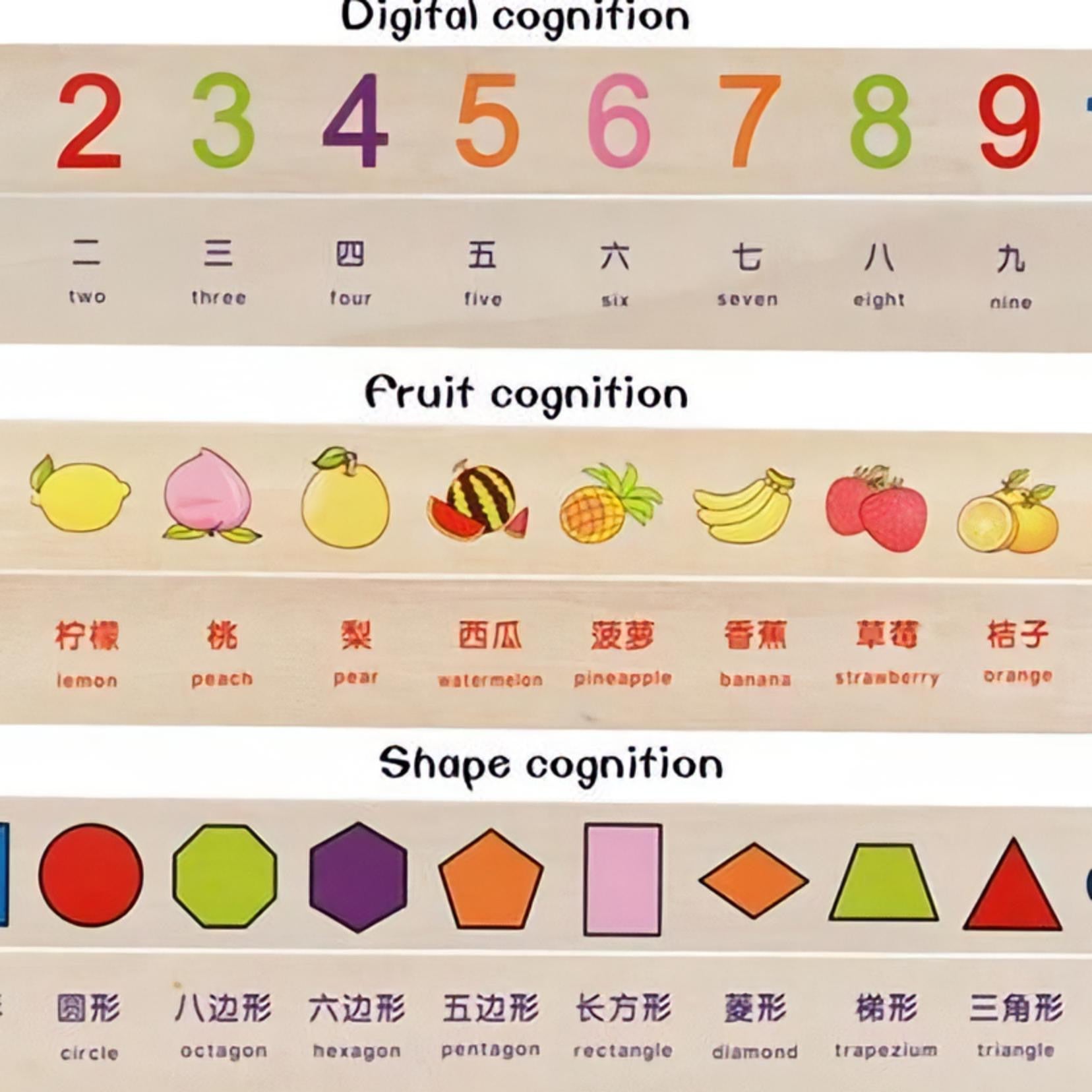 Tudásosztályozó doboz (számok, formák, járművek, zöldségek, állatok és gyümölcsök) Fejlesztő oktatójáték 3 év feletti gyermekek számára.